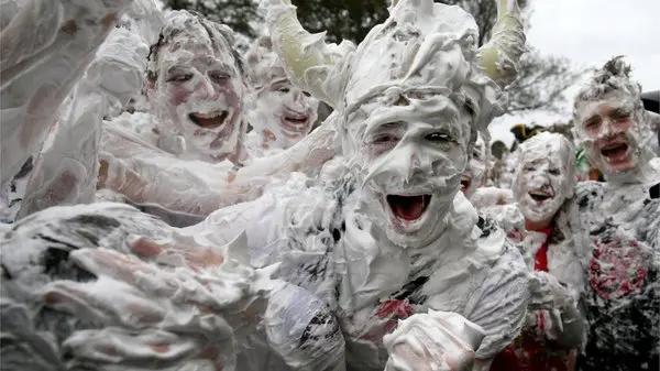 رکنا: بر اساس یک رسم عجیب و پرهیجان دانشجویان انگلیسی دانشگاه سنت اندروز با پاشیدن فوم های ریش تراشی، سپاس و قدردانی خود را از زحمات والدین شان ابراز کردند.
