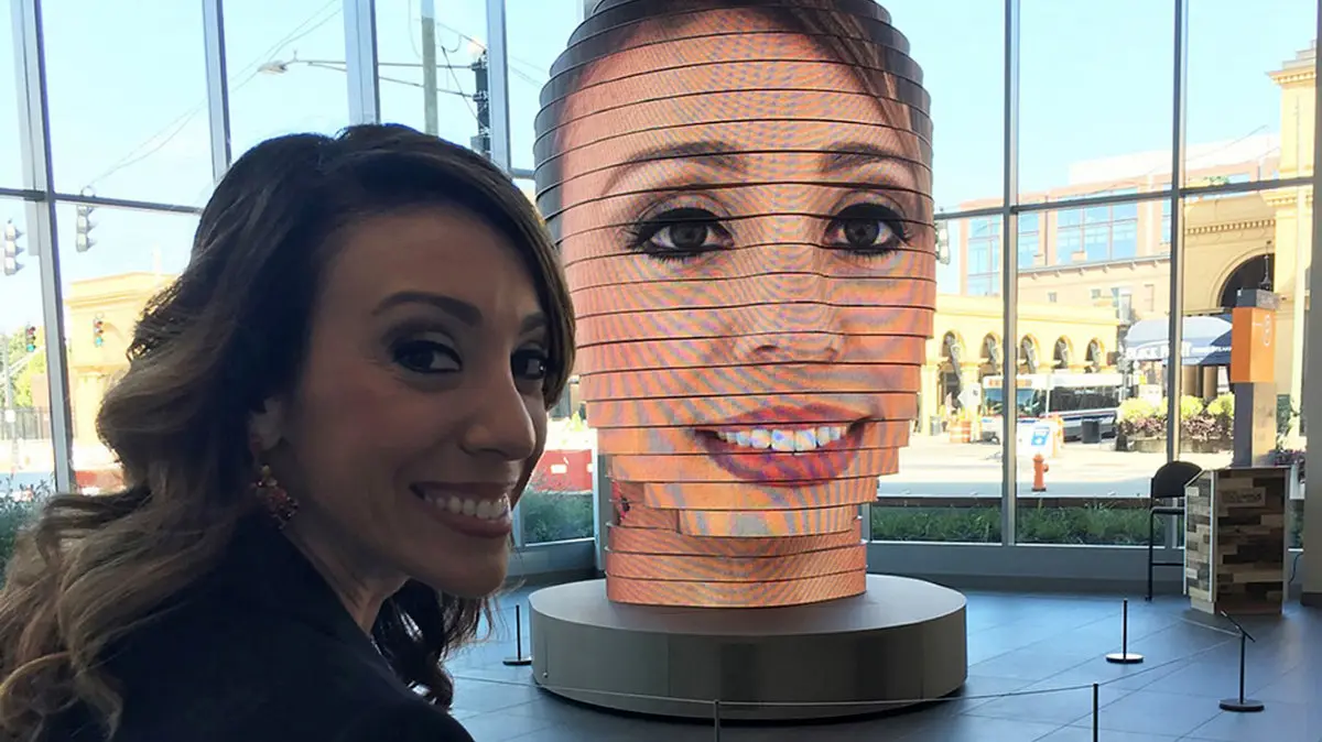 به منظور ثبت چهره سه بعدی و نمایش آن توسط این مجسمه، کافی است کاربر از درب پشتی آن وارد شود تا 29 عدد دوربین موجود در اتاق، تنها در چند ثانیه، تصاویر متعددی از زوایای مختلف سر و صورت کاربر را ثبت نماید. سپس تصاویر، پردازش شده و از طریق نمایشگرهای LCD محدب نصب شده روی مجسمه، نمایش داده می شوند.