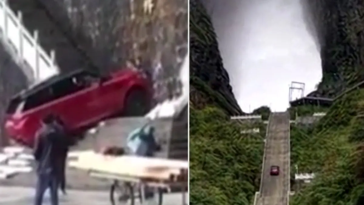 رکنا: این خودرو از پله های جاده معروف «بهشت» در چین بالا رفت و با سرعت مسیر را طی کرد.