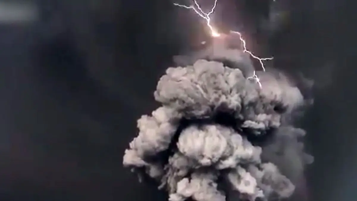فیلم شگفت انگیز از رعد و برق در بالای آتشفشان+ عکس