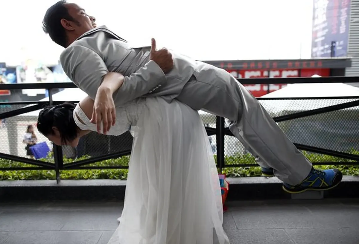 مسابقه دویدن عروس و دامادها در لباس های شب جشن +تصاویر دیدنی