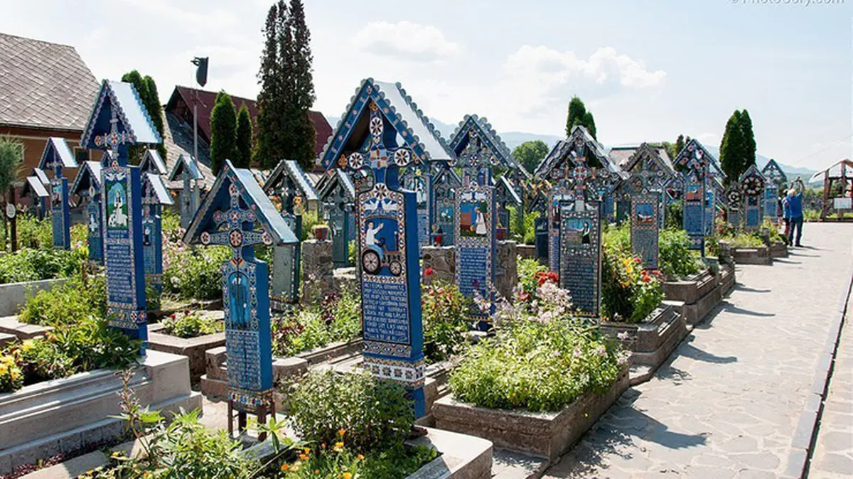 قبرستان آبی ، در کشور رومانی واقع شده است که بر روی مقبره های این گورستان، اتفاقاتی که باعث مرگ متوفی شده، روی سنگ قبر متوفی به صورت کارتونی ترسیم شده است.