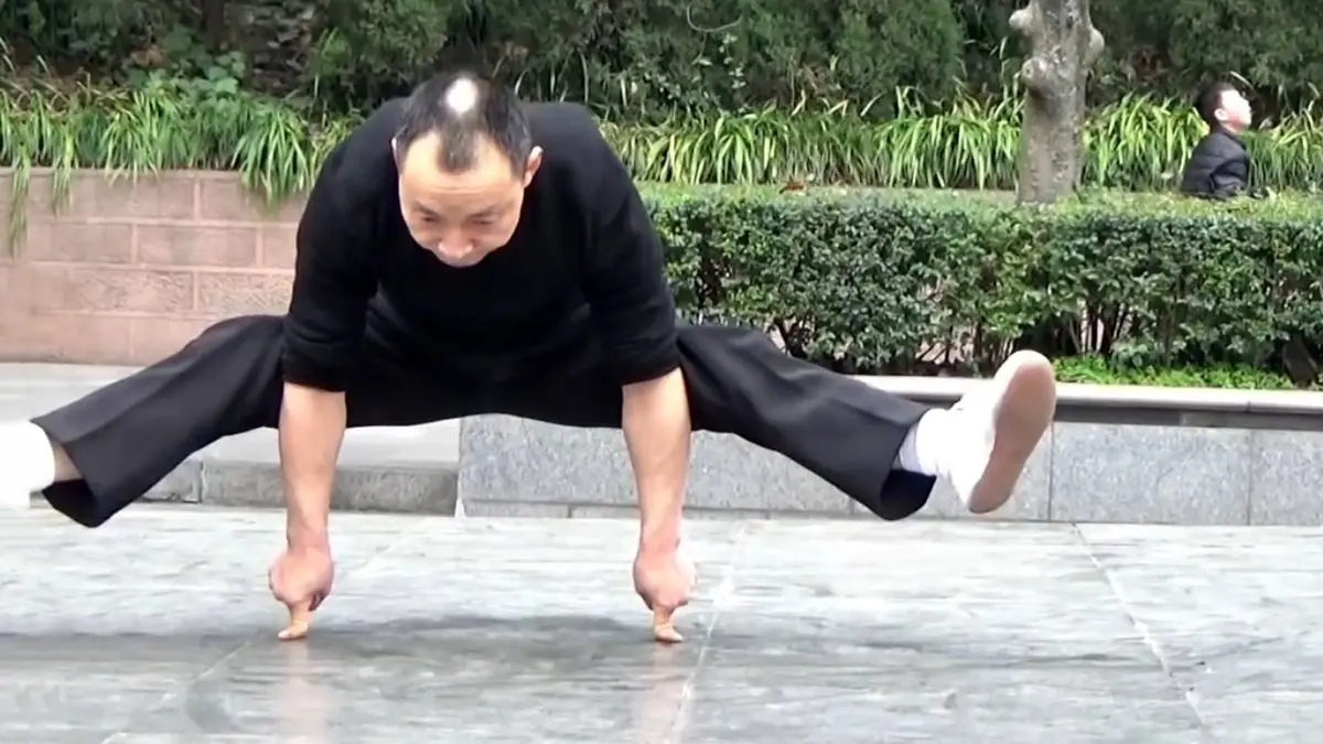 رکنا: ویدئویی از استاد گنگ فو چینی را ببینید که با قدرت دو عدد از انگشتان وزن بدنش را به راحتی تحمل می کنید.
