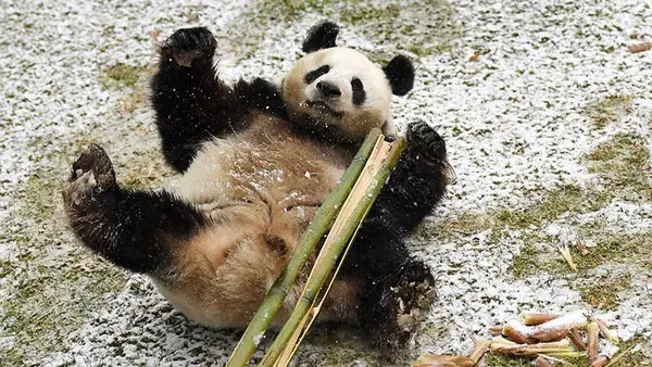 لحظه ذوقزدگی یک پاندا پس از بارش برف !+ تصاویر
