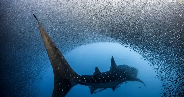 رکنا: تصویر حمله یک کوسه گرسنه به کلونی ماهی ها عکس امروز نشنال جئوگرافیک است.