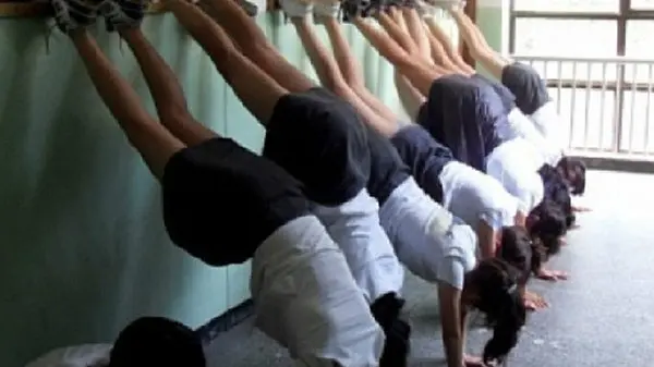 تنبیه و قوانین عجیب بیشتر در کشورهای آسیایی مشاهده می شود که یکی دیگر از آنها ایستادن روی دست هاست که دانش آموزان در نتیجه حرف زدن در کلاس یا دیر آمدن باید در گوشه کلاس یا حیاط سر و ته بایستند.