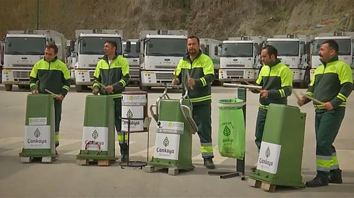 رکنا: کارگران شهرداری شهر آنکارا، علاوه بر احداث کتابخانه از زباله های فرهنگی برای بازدیدکنندگان موسیقی زنده اجرا میکنند.