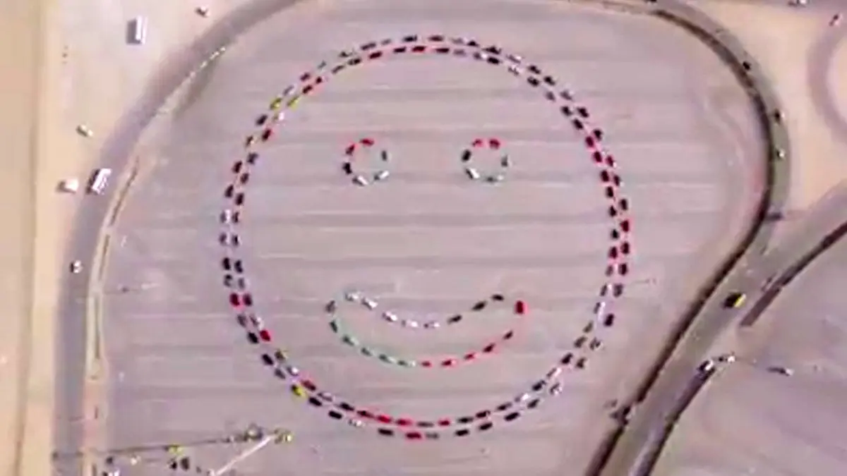 ویدئوی زیر نیز حرکت جالبی از عدهای راننده در دبی صورت گرفته است. طی این اقدام که توسط پلیس Police دبی طراحی شد، 143 راننده دست به دست هم داده و با خودروهای خود طرحی از یک چهره خندان را به نمایش گذاشتند. این اقدام جالب به عنوان رکوردی جدید در کتاب گینس ثبت شد. برای ورود به کانال تلگرام ما کلیک کنید.