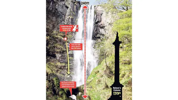 در یک اتفاق معجزه آسا، پسر 3 سالهای که از ارتفاع 46 متری یک آبشار به پایین سقوط کرده بود تنها دچار خراشیدگی صورت شد.