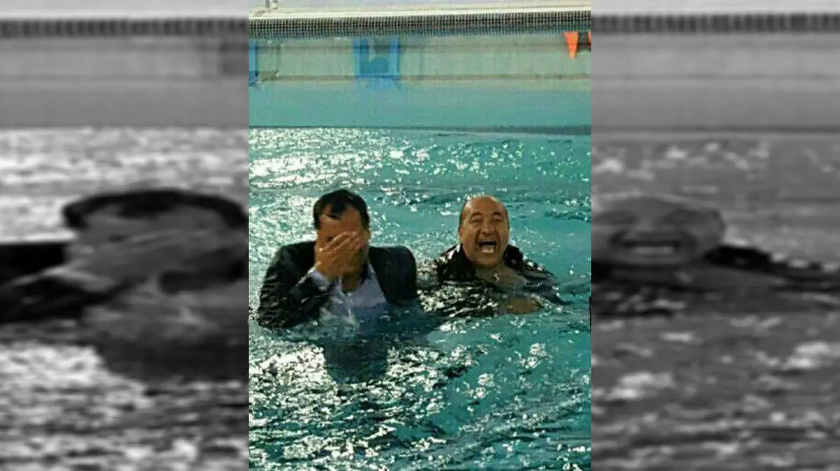شنای نماینده مجلس و فرماندار با کت و شلوار در استخر +عکس و جزییات