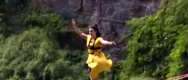 به گزارش رکنا، به نقل از اسکای نیوز، این بندبازان با کفش های پاشنه بلندشان طناب 70 متری را که در میان صخره ها قرار داده شده بود طی کردند تا دست به کاری شگفت انگیز زده باشند.