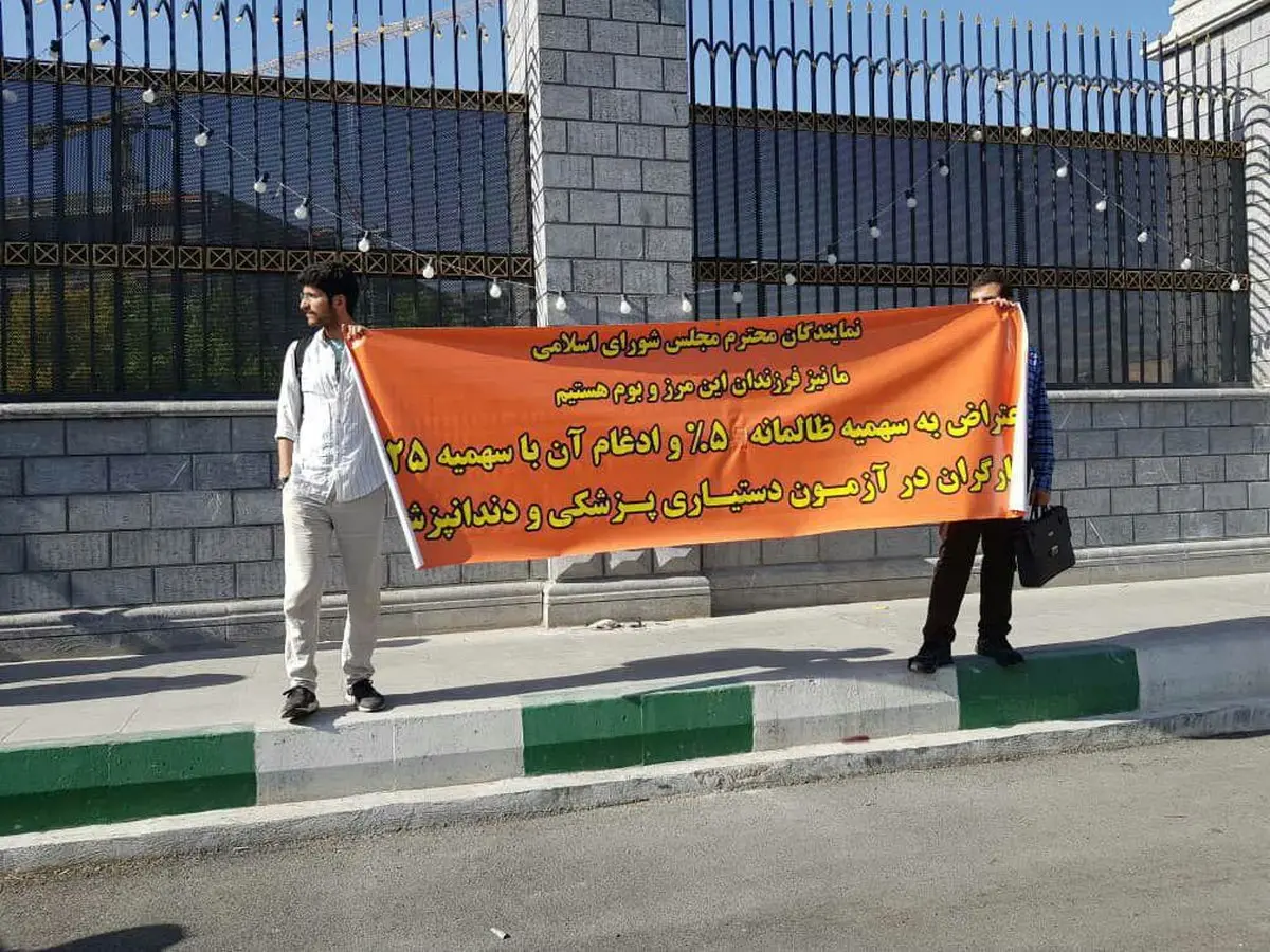 رکنا: جمعی از دانشجویان مقطع کارشناسیارشد و دستیاری پزشکی مقابل مجلس تجمع کردند.