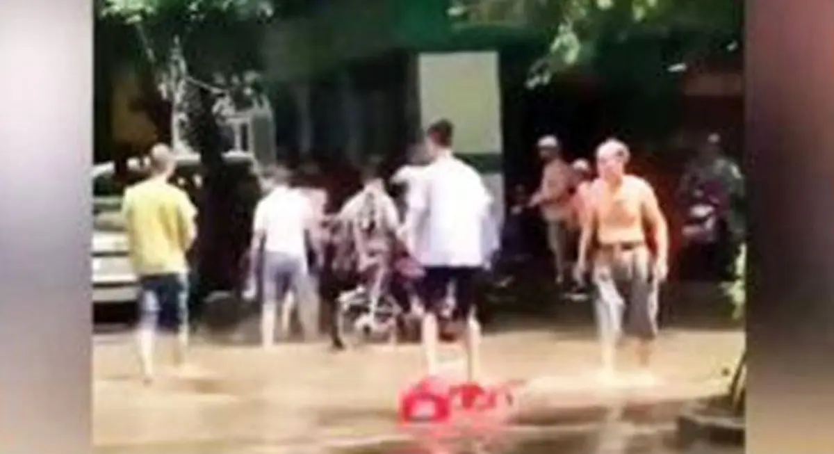 رکنا: فروشندههای چین پس از جاری شدن سیل در شهر گوانگدونگ چهارپایههای پلاستیکی کوتاهی را به کش مجهز کرده و به عنوان دمپایی ضدسیلاب به رهگذرها فروختند.