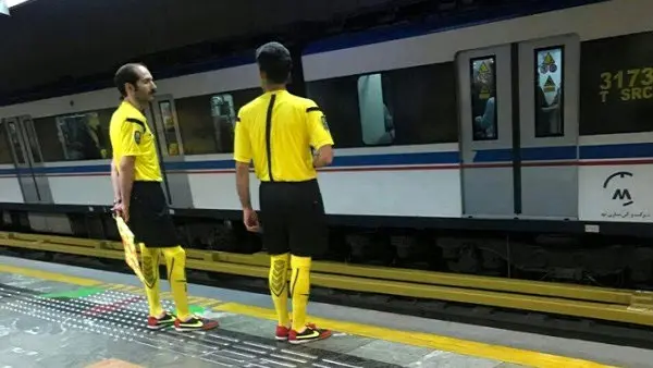 به گزارش رکنا، در نگاه اول به عکس بالا، به نظر می رسد که 2 داور فوتبال به متروی تهران آمده اند تا سوار قطار مترو شوند. در حالی که مأموران ایستگاه دست به اقدام جالبی زده اند. آن ها با شروع جام جهانی لباس داوری بر تن دارند و هر کس از خط زرد لبه سکو رد شود، سوت و پرچم زده و به او کارت زرد نشان می‌دهند.