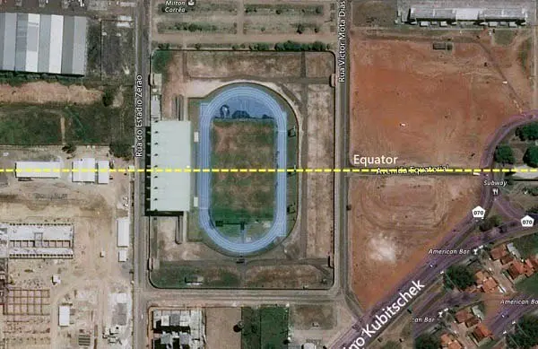 برزیل دارای سیستم ژئودتیک مخصوص کشور خود با نام سیستم ژئودتیک برزیلی است. هنگامی که کارشناسان برای تطبیق خط استوا با خط میانی زمین فوتبال به استادیوم میلتون کورکا رفتند به درستی دریافتند که خط میانی زمین دقیقن منطبق با خط استوا است. اما اگر بخواهیم بر مبنا سیستم بینالمللی WGS 84 عمل کنیم باید دستگاه GPS را در دست بگیریم و دقیقن از مرکز زمین 2 ثانیه به طرف شمال حرکت کنیم تا به خط استوا برسیم.مردم محلی که در کنار استادیم زندگی میکنند میگویند: بدون توج به اینکه این مکان در مرکز زمین است یا نه فقط فوتبال خوبی را بازی کنید.