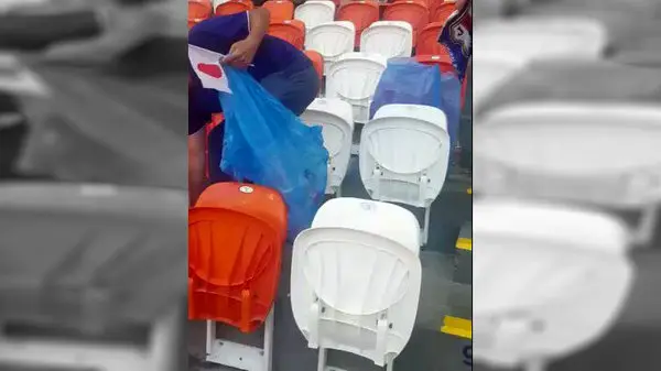 پس از پایان بازی فوتبال، جمعی از هواداران تیم ملی ژاپن به پاکسازی و تمیز کردن سکوها و صندلی های استادیوم «موردویا» پرداختند.