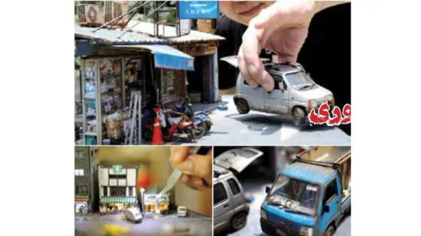 رستورانها، خودروها و تمام وسایل به کار رفته در شهر ساختگی طی ساعتها تلاش این هنرمند Artist کنار هم و با شکلی طبیعی قرار گرفته است.