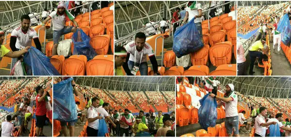 رکنا: تماشاگران ایرانی بعد از اتمام بازی ایران و پرتغال اقدام به پاکسازی جایگاه تماشاچیان کردند. این کار خوب در رسانه های خارجی بازتاب گسترده ای داشت.
