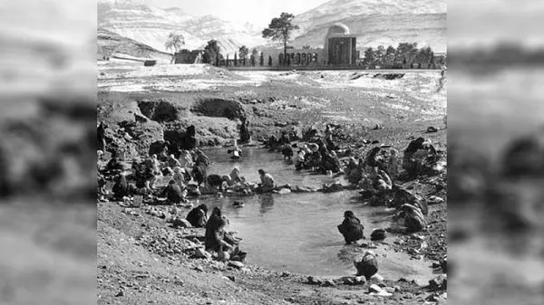 رختشویی زنان شیرازی در محوطه آرامگاه سعدی، بیش از 100 سال پیش +عکس
