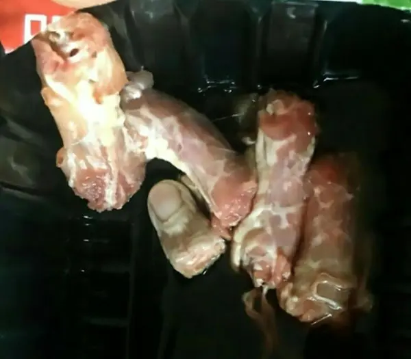 رکنا: زن جوان بعد از خرید یک بسته مرغ با انگشت بریده شده در دخال بسته مواجه شد.