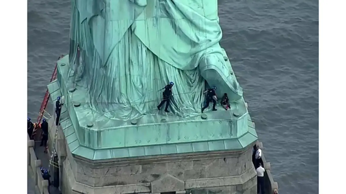 اعتراض عجیب زن آمریکایی با بالا رفتن از مجسمه آزادی+عکس