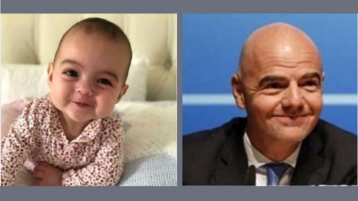 به گزارش گروه ترجمه رکنا، آلانا مارتینا کوچکترین دختر کریستیانو رونالدو Ronaldo ستاره پرتغالی از نامزدش جورجیناست. اخیرا عکسی از او در فضای مجازی منتشر شده که به تشخیص کاربران شبکههای اجتماعی شباهت زیادی به جیانی اینفانتینو رئیس فیفا دارد. این شباهت باعث شوخی کاربران با رونالدو شده است.