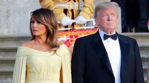 در این مراسم دونالد ترامپ در حالی که یک تاکسیدوی مشکی به همراه پاپیون به تن دارد در کنار ملانیا ایستاده است.