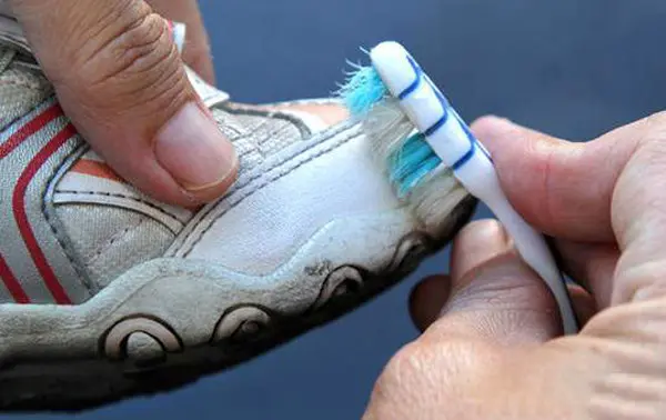 3 - اگر کفش لکه های سرسختی دارد که به این آسانی از بین نمی رود، از مسواک قدیمیتان استفاده کنید. این کار را بآهستگی انجام دهید.