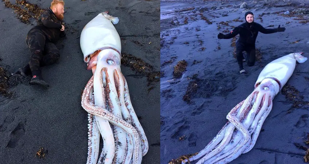 راز جسد ماهی مرکب غول پیکر در ساحل + عکس