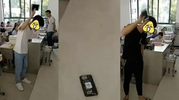 در ویدئویی که تبدیل به ویدئویی داغ در شبکههای اجتماعی چین شده است این دو دانش آموز را در حالی که تلاش میکنند موبایل خود را با کوبیدن به زمین بشکنند نشان میدهد. در این ویدئو مشاهده میشود هر دو دانش آموز در حالی که سعی دارند با پرتاب آهسته موبایل خود از این تنبیه فرار Escape کنند مجبور به تکرار دوباره این عمل و کوبیدن آن به زمین با شدت بیشتر میشوند. این حادثه Incident به تازگی در یکی از مدارس راهنمایی منطقه "یانگژو" در استان هونان چین رخ داد. پس از انتشار گسترده این ویدئو معلم این دو دانش آموز به خبرنگاران گفت که آوردن موبایل به مدرسه ممنوع است و این دانش آموزان پس از زیر پا گذاشتن قانون Law مدرسه بصورت اختیاری تصمیم به شکستن تلفنهای همراه خود گرفتند.