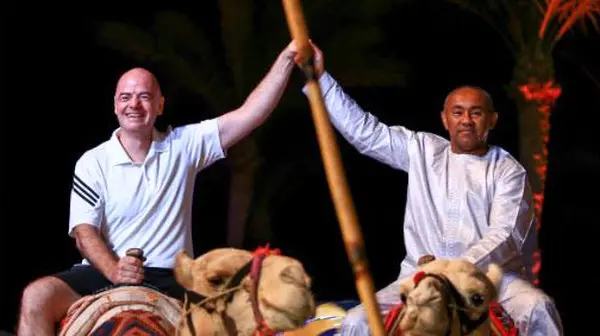 رکنا: صفحه توئیتر رسمی کنفدراسیون فوتبال آفریقا (کاف) تصویر جالبی از شتر سواری احمد احمد رئیس این کنفدراسیون در کنار جیانی اینفانتینو رئیس فیفا در شرم الشیخ منتشر کرده است.