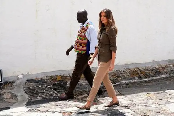 برخی رسانههای آمریکا انتخاب مانتویی گران به هنگام عزیمت ملانیا به آفریقا را بدسلیقگی دیپلماتیک دانستند اما از کفشهای ارزان او که در دومین روز سفر به غنا به پایش کرده بودن، تمجید کردند.