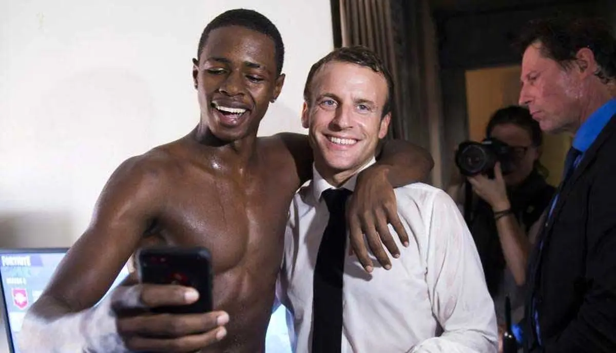در حاشیه بازدید مکرون از سن مارتن یک سیاه پوست برهنه با رییس جمهور فرانسه عکس سلفی گرفت.