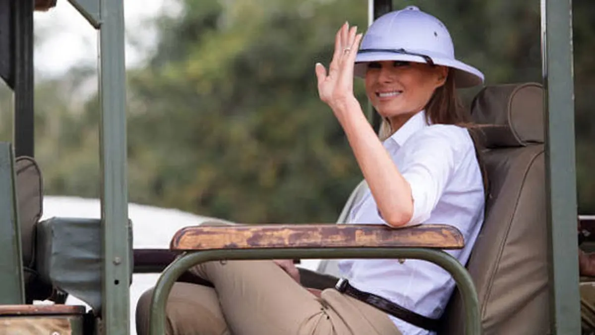 به گزارش رکنا، بانوی اول آمریکا در جریان بازدید از پارک حیاتوحش کشور کنیا، کلاه سفید ایمنی که در آفریقا به عنوان نماد استعمارگران قرن ۱۹ شناخته میشود، بر سرگذاشته است. همین امر او را به سوژه تازه منتقدان خانواده ترامپ Trump بدل کرده است.