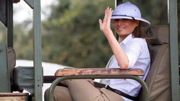 بانوی اول آمریکا در جریان بازدید از پارک حیاتوحش کشور کنیا، کلاه سفید ایمنی که در آفریقا به عنوان نماد استعمارگران قرن ۱۹ شناخته میشود، بر سرگذاشته است. همین امر او را به سوژه تازه منتقدان خانواده ترامپ Trump بدل کرده است.