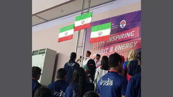 عکسی زیبا و کم نظیر از به اهتزاز درآمدن پرچم های ایران در مسابقات آسیایی