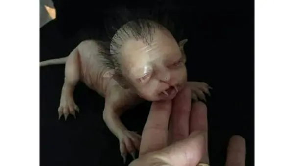 موجودی عجیب که شبیه انسان و گربه است را می بینید که با چشمان بسته روی سبزه ها قرار دارد ، شکل ظاهری این موجود ترکیبی از انسان و گربه است و 2 دندان بلند دارد که از دهانش بیرون آمده است و بر عجیب تر شدن آن افزوده است در حالیکه هیچ کدام از این ویژگی ها واقعی نیست و شایعه ای بزرگ بوده که تقریبا اکثر کاربران فضای مجازی آن را باور کردند.