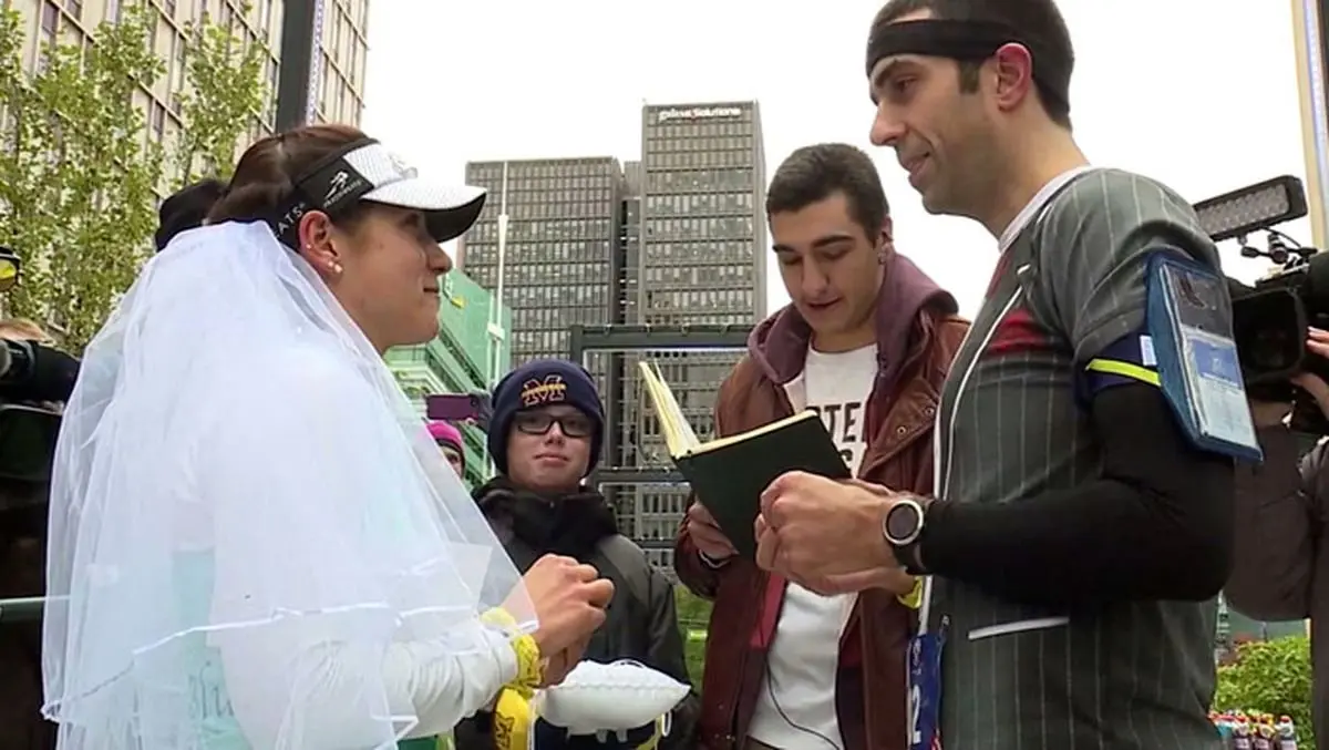 رکنا: یک زوج دونده تصمیم گرفتند در جریان برگزاری دو ماراتن شهر منهتن امریکا با یکدیگر ازدواج کنند.