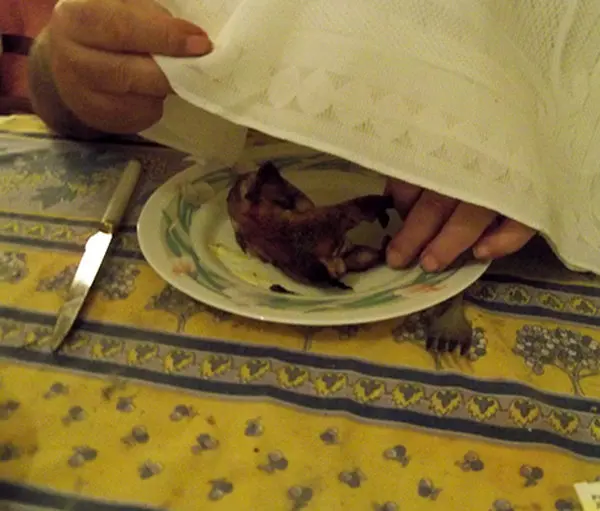 سپس آن را کشته و روی آتش کباب میکنند. هنگام خوردن این غذا باید سرتان را با دستمال بپوشانید. برخی مردم میگویند دستمال کمک میکند در آرامش از این غذا لذت ببرید و برخی دیگر میگویند برای مخفی شدن از خدا به خاطر خوردن چنین پرنده شگفت انگیزی است!