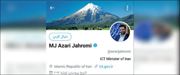 رکنا: تصویری از عکس پیشانی اکانت توئیتر وزیر ارتباطات فضای مجازی را پر کرد. وزیر ارتباطات احتمالا اشتباهی عکس قله تاراناکی نیوزیلند را به جای دماوند در پیشانی اکانت توئیترش قرار داده بود.