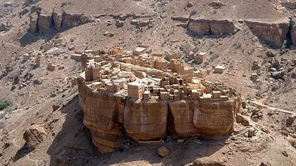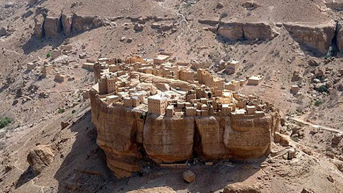 رکنا: تصویری از یک روستای شگفت انگیز در یمن را مشاهده میکنید که روی تخته سنگی بنا نهاده شده است.