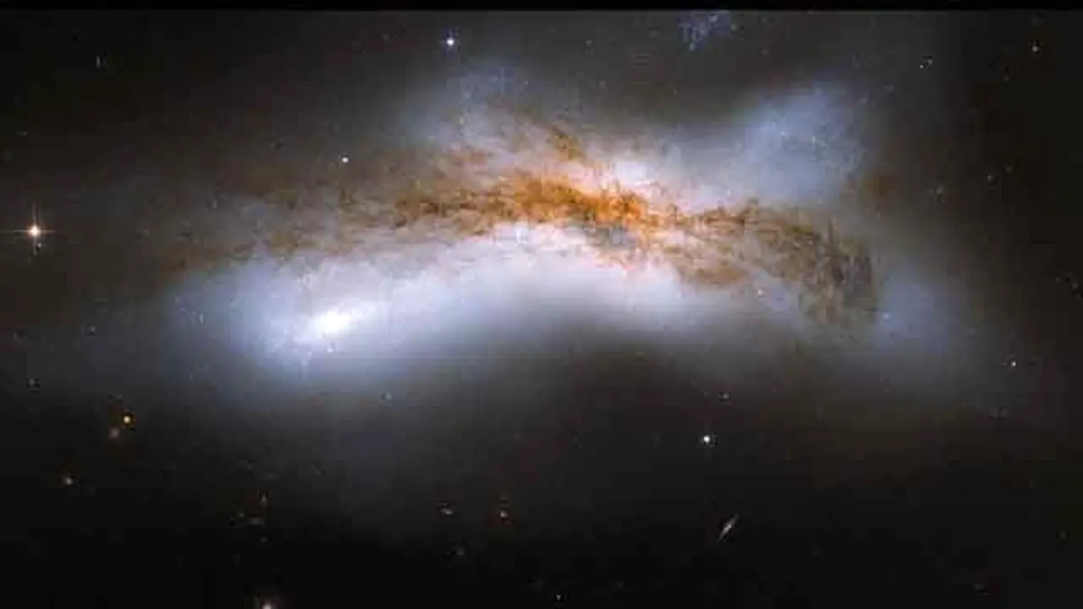 این دو کهکشان که حدود ۱۰۰ میلیون سال نوری از زمین فاصله دارند، حدود ۳۰۰ میلیون سال پیش شروع به ادغام کردهاند!