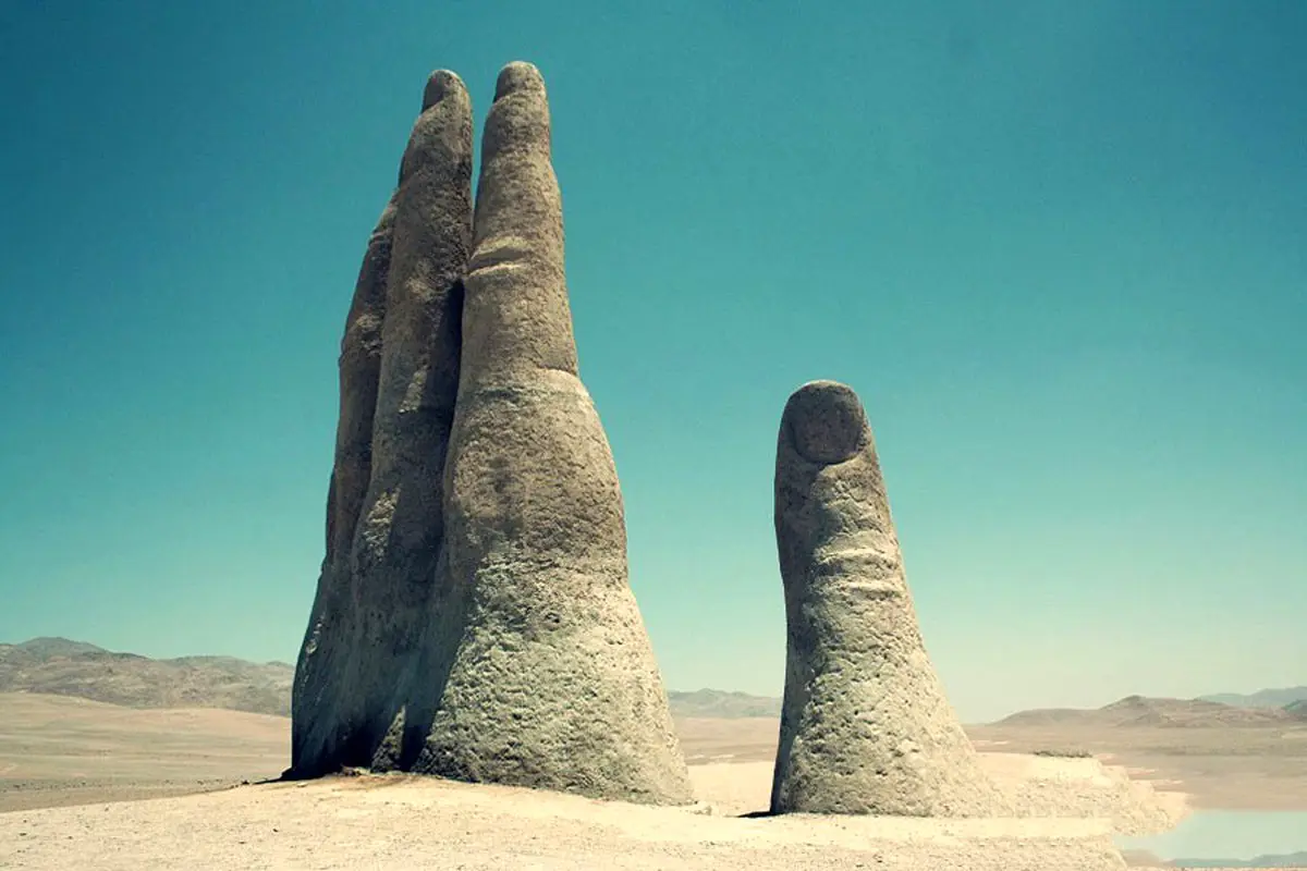 صحرای آتاکاما یکی از خشکترین و دورافتادهترین مناطق دنیا است. حتی برخی از نقاط این صحرا بیش از یک دهه است که باران ندیدهاند. این بیابان بی آب و علف جایی نیست که گردشگران را جذب کند و فقط شاید ماجراجوها به اینجا پا بگذارند. به هر حال مجسمهسازی به نام Mario Irarrazabal این نقطه خاص را برای ساخت مجسمهی دست غول پیکرش انتخاب کرد.