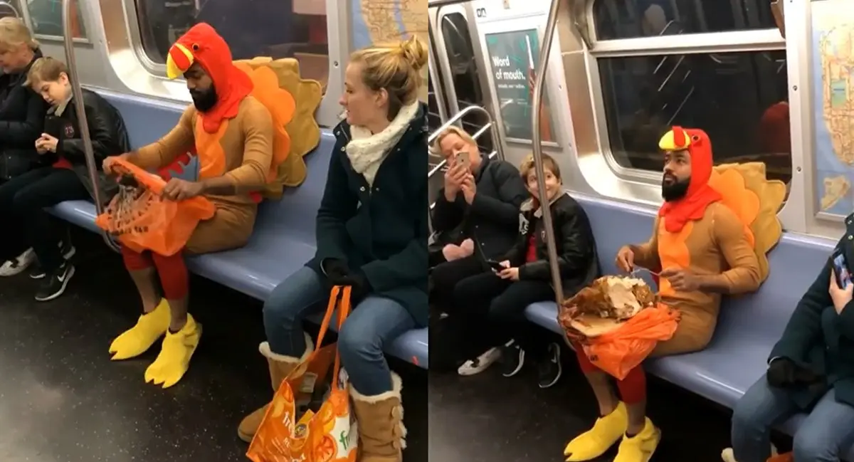 رکنا:مسافران مترو نیویورک از دیدن صحنه خوردن بوقلومون جشن تنسک گیوینگ در مترو شوکه شدند