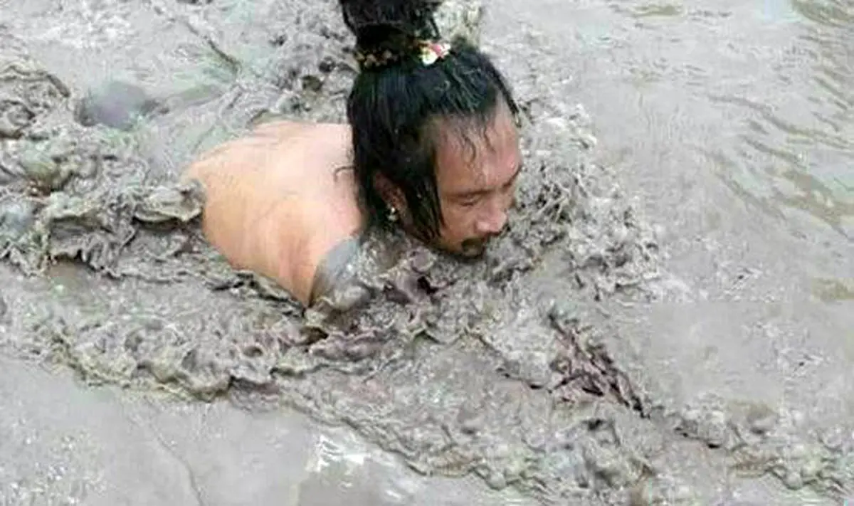 این مرتاض با نادیده گرفتن خطر نزدیک شدن به گل رودها، در یکی از شاخه های رودخانه «اوندا» که در حال حاضر، آب آن به دلیل ورود خاکستر و گدازه های آتشفشانی به رنگ خاکستری درآمده، حمام کرد و کاملا در آن فرو رفت.