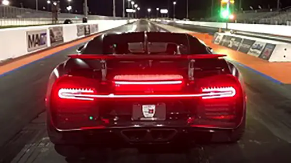 رکنا: خودرو سوپر اسپرت بوگاتی شیرون در رکوردی بینظیر بیش از نیم کیلومتر را در کمتر از ۱۰ ثانیه طی کرد.