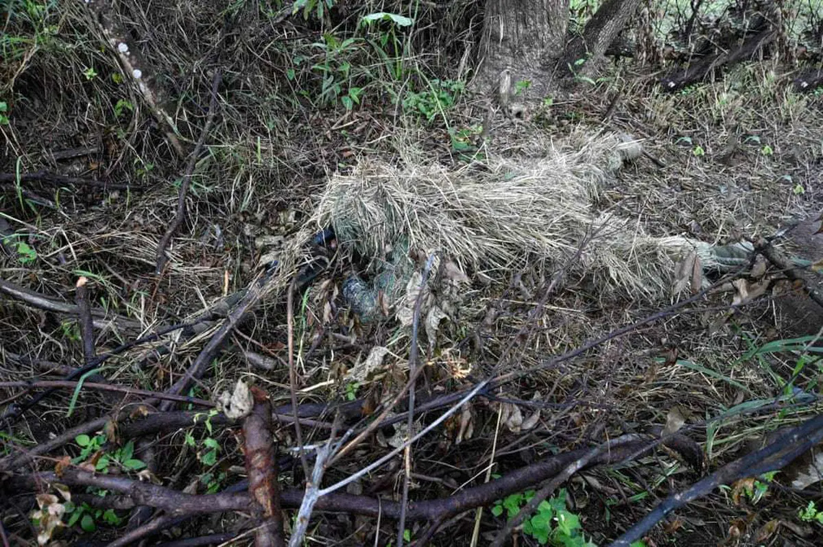 رکنا: تصویری از یک تک تیرانداز ارتش تایوان را که در تمرین سالانه خود را به صورت حرفهای استتار کرده و در جنگل مخفی شده است را مشاهده میکنید.