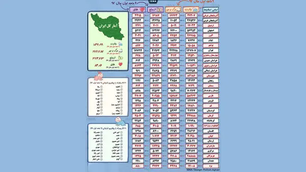 به گزارش رکنا، بر اساس گزارش دیگر ارائه شده توسط سازمان ثبت احوال آمار ولادت و فوت طی ۹ماهه نخست سال ۹۷ نیز اعلام شده است که طبق این آمار، یک میلیون و ۴۶ هزار و ۹۹ واقعه ولادت و در همین بازه زمانی نیز ۲۷۶ هزار و ۷۸۷ واقعه فوت ثبت شده است.