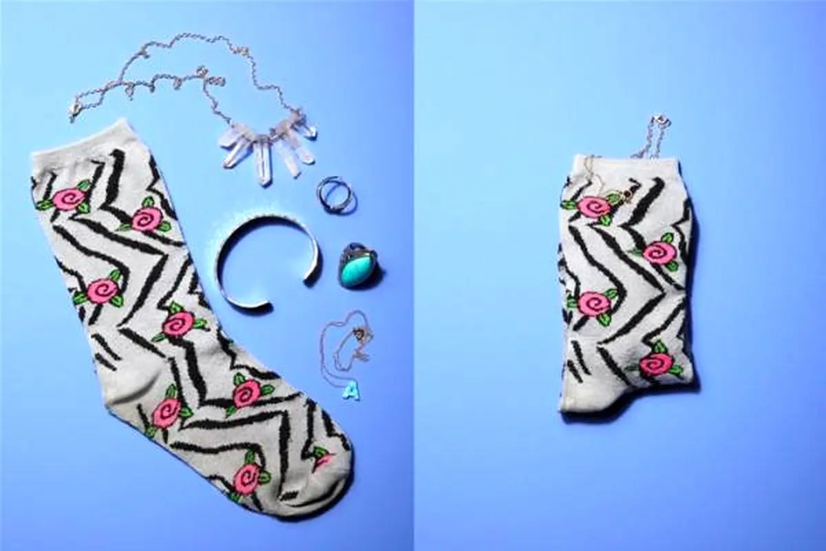 1- جواهرات و زیورآلات را در هنگام سفر داخل لنگه جوراب قرار دهید تا علاوه بر آنکه جای کمتری نسبت به جعبه جواهرات می گیرد ، جواهرات را در خود به خوبی جای دهد.