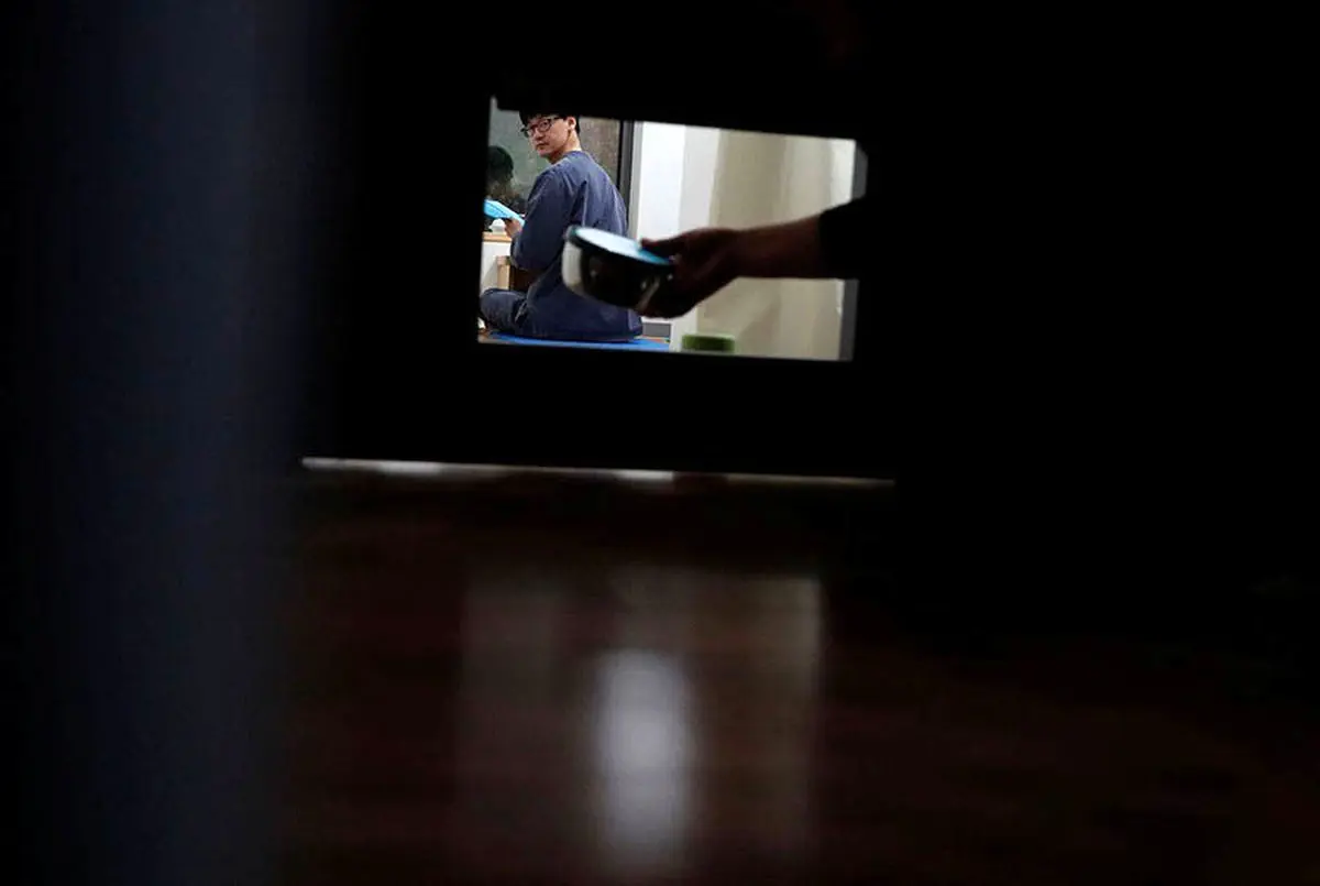 پارک های‌ری (Park Hye-ri) که 28 سال دارد، مدیر یک استارتاپ است. او در این تصویر موبایل خود را بیرون از سلول قرار می‌دهد. پارک های‌ری می‌گوید: این زندان به من حس آزادی می‌دهد، من همین حالا هم نباید اینجا باشم چون کارهای زیادی برای انجام دادن دارم اما تصمیم گرفته‌ام توقف کنم و به خودم بهتر توجه کنم.
